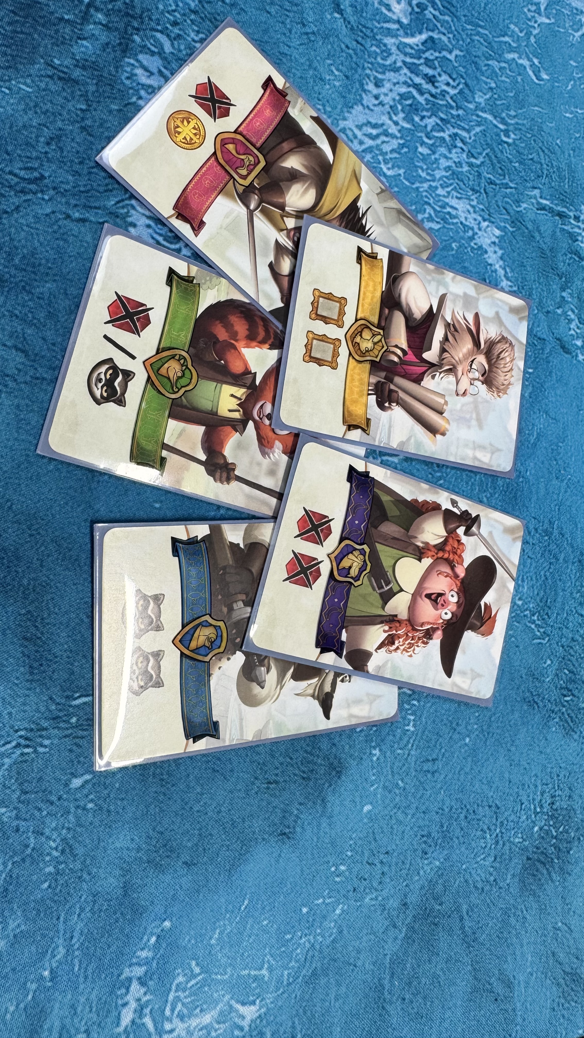 A jelikož se všechny jejich karty vždy dávají na společnou hromádku, musí být jasné, který žoldák kope za jaký rod. A k tomu jsou právě tyto obaly. Během hlavní fáze si hráč vybere postavu, zaplatí za ni a pak její kartu vloží do svého obalu a šup s ní lícem dolů na společnou hromádku.