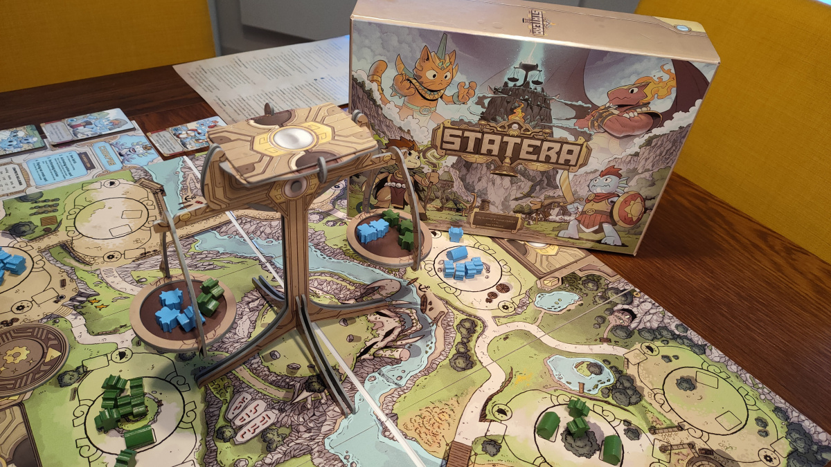 Statera je nevšední hra pro jednoho až čtyři hráče řízená scénáři, které různými způsoby upravují pravidla hry, podmínky vítězství a tak podobně. Vždy v tom ale hrají roli nějakou velké váhy, na nichž si protivníci poměřují množství obětovaných duší. Jedná se hru řízenou akcemi, která používá karty pro vylepšení těchto akcí a budete v ní v hojné míře bojovat o území. Je ale ve své podstatě jednoduchá a přístupná.