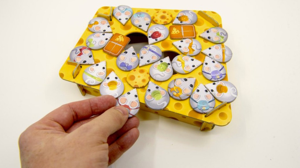 Ty taháte náhodně z pytlíku a na tento herní plán je zašupujete, čímž nevyhnutelně dochází k tlačenici, kdy některé myšky mohou dokonce spadnout z kraje herního plánu nebo do díry v sýru. Cílem je udržet co nejvíc svých myšek na ploše sýra. Do bodování ještě může kladně promluvit sousedství s kousky sýra, případně záporně sousedství s pastičkami.