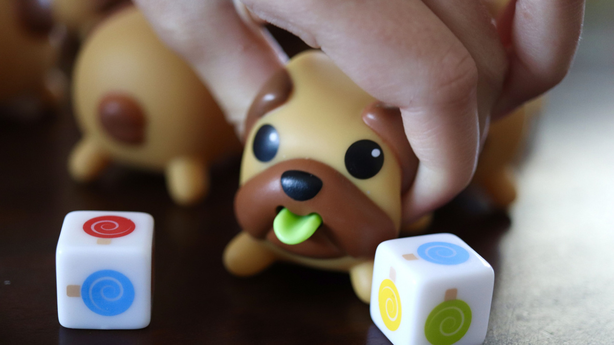 Hráč na tahu ale nejprve hodí dvěma barevnými kostkami, které určí, po jaké barvě se má pídit a když odhalí pejska s jazykem dané barvy, vezme si ho k sobě jako vítězný bod. I Jazýčky ven vyjdou v červenci.
