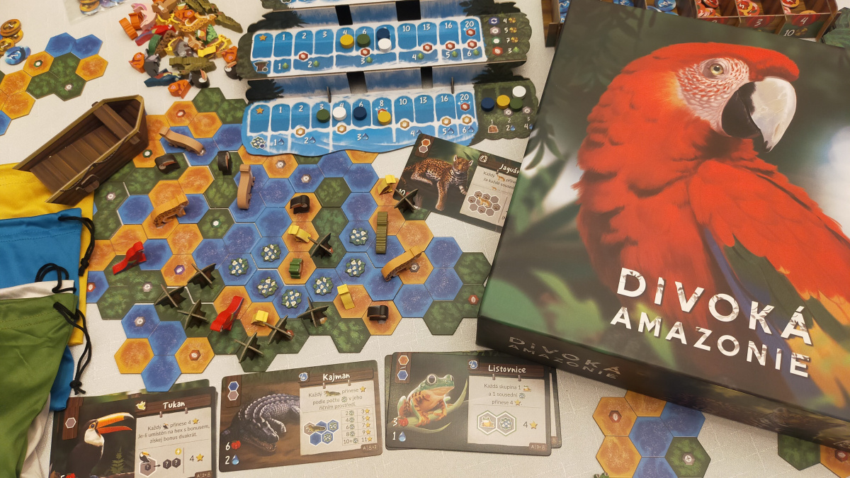 Rexhry vydaly další parádní hru se zvířaty. Z Afriky nás jihokorejské vydavatelství Bad Comet přeneslo do pralesů Jižní Ameriky. Zatímco v Divoké Serengeti hráči v rolích dokumentaristů posouvali pěkně vyřezávaná zvířata po centrální čtvercové mřížce pevného hracího plánu, tak v Divoké Amazonii si každý hráč staví svou vlastní část pralesa z hexových růžic, kterou zvířaty osazuje.
