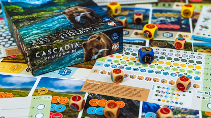 Ta zatím přínáší dvojici titulů Cascadia: Rolling Rivers a Cascadia: Rolling Hills. Oba vytvořili dvorní tvůrci, tedy návrhář Randy Flynn, jehož na pozici ilustrátorky doplňuje expertka na přírodní tematiku – Beth Sobel. Společnými silami hráčům chtějí nabídnout flip-and-roll-and-write výpravu, která vás provede říčním prostředím pacifického severozápadu, případně rozlehlými prériemi.
