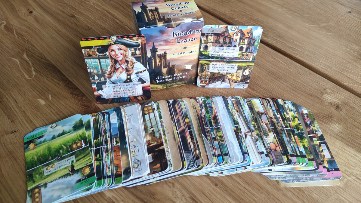 Kingdom Legacy: Feudal Kingdom je malá krabička obsahující poměrně velkou hru. Jedná se o ryze karetní hru určenou pouze pro jednoho hráče, za kterou stojí jeden z členů velmi početné rodiny Fryxeliových, které má celý deskoherní svět spojené s megahitem Mars: Teraformace.