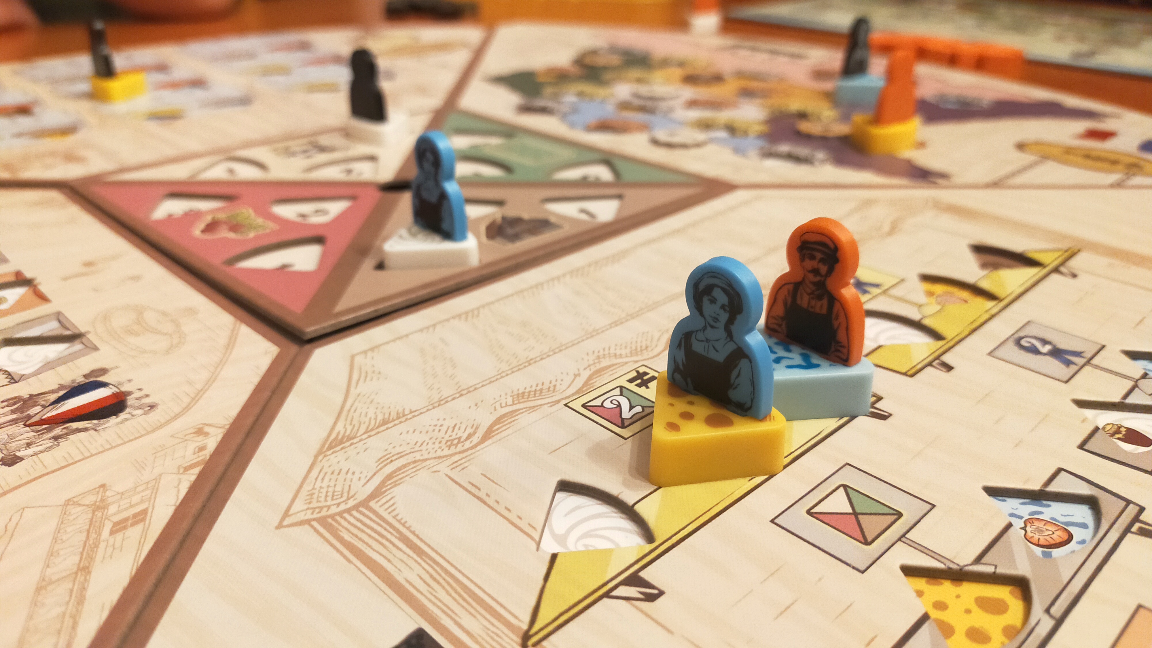 Políčka surovin jsou šipkami, které určují, jakou surovinu si okamžitě můžete vzít a v jak velkém množství. Podle toho se vám pracovník vrátí za jeden, dva či tři tahy tehdy, když svou špičkou budou ukazovat vaším směrem. Stejným způsobem jsou rozlišená políčka sýrů v kvadrantech na bronzová, stříbrná a zlatá. Když umístíte sýr na zlaté místo, zajistíte si výhodnou pozici a dost možná hodně bodů, ale budete čekat na návrat opět tři tahy.