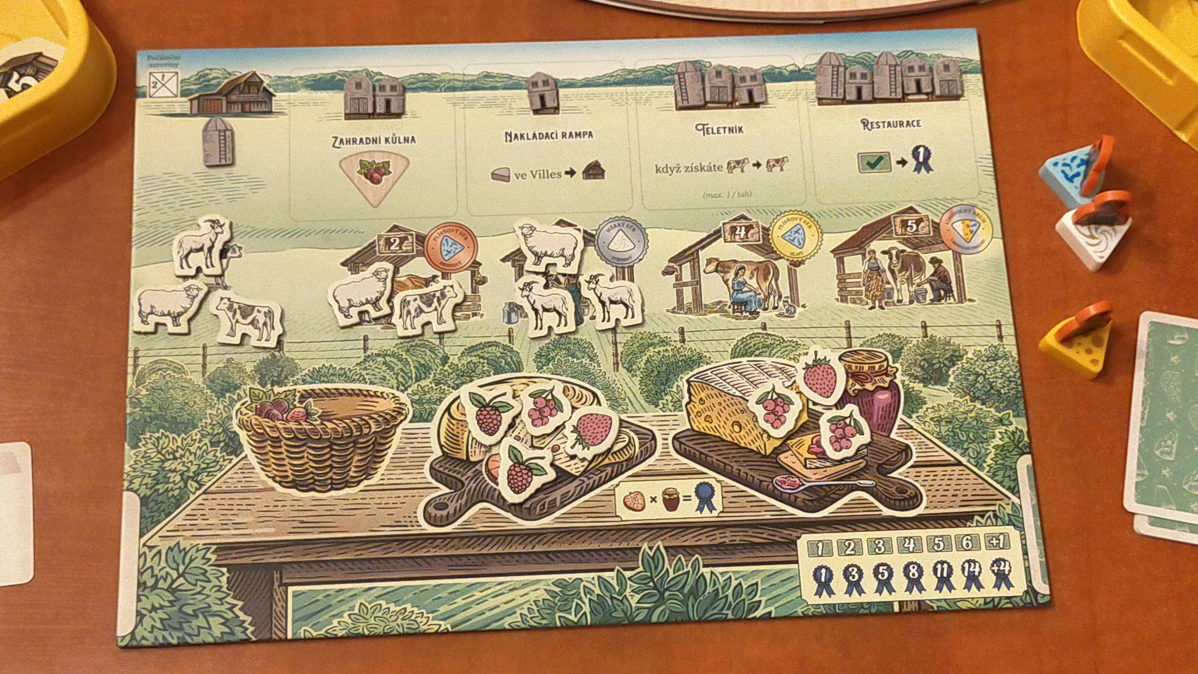 Jakmile se vám desky omrzí, začnete si vlastní sýrárnu sestavovat v počátku partie draftem destiček nahrazujících vyobrazené budovy. Ovoce potřebujete na dělání ovocných sýrů či sýrů podávaných s džemem. A karty objednávek vám sami o sobě dávají body, když vyrobíte sýr dle zadání.
