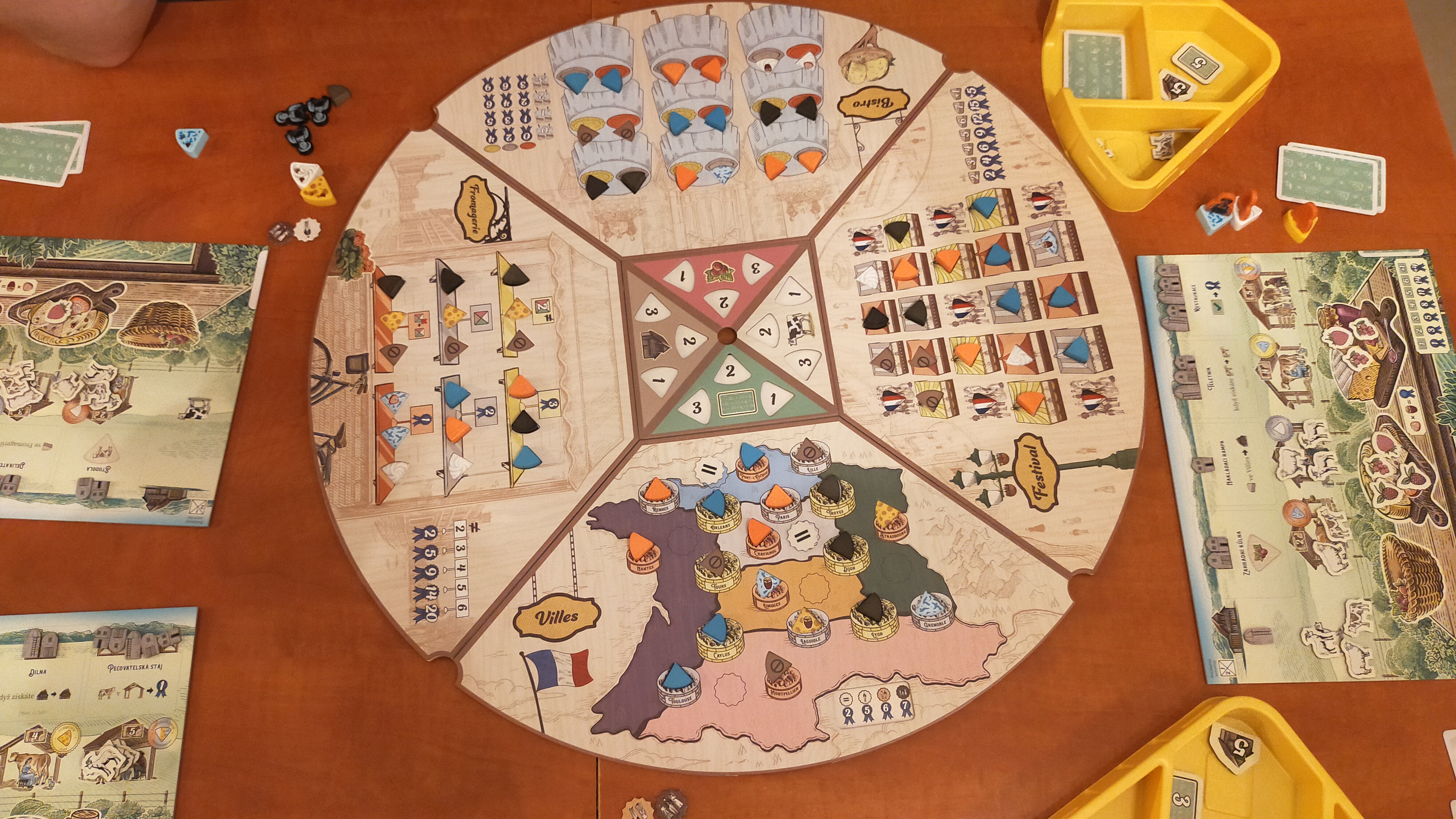 A co děláte v sýrových prodejnách? V bistru se snažíte mít co nejvíce párů, což zvyšuje hodnotu všech vašich sýrů v bistru; v sýrárně se snažíte být přítomní na co nejvíce policích; v regionech mít vliv na různě hodnotné zákazníky; a na festivalu mít co nejdelší řadu ortogonálně propojených stolů včetně trikolorových žolíků, kteří se počítají pro všechny hráče.
