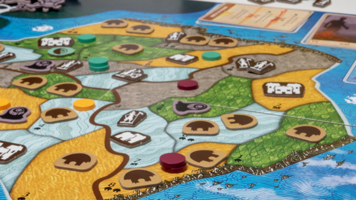 Horizons of Spirit Island je o poznání menší bratříček původní hry Duchové ostrova, s níž sdílí mnohé, ale zároveň je svůj. Zahrát si ho můžete jen v jednom, dvou nebo třech hráčích a musíte se obejít bez modulární herní mapy, místo níž tu je pevná hrací deska, ale aspoň oboustranná. Stejně tak jsou veškeré komponenty pokládané na mapu jen z kartonu, žádné hezké 3D vesničky.
