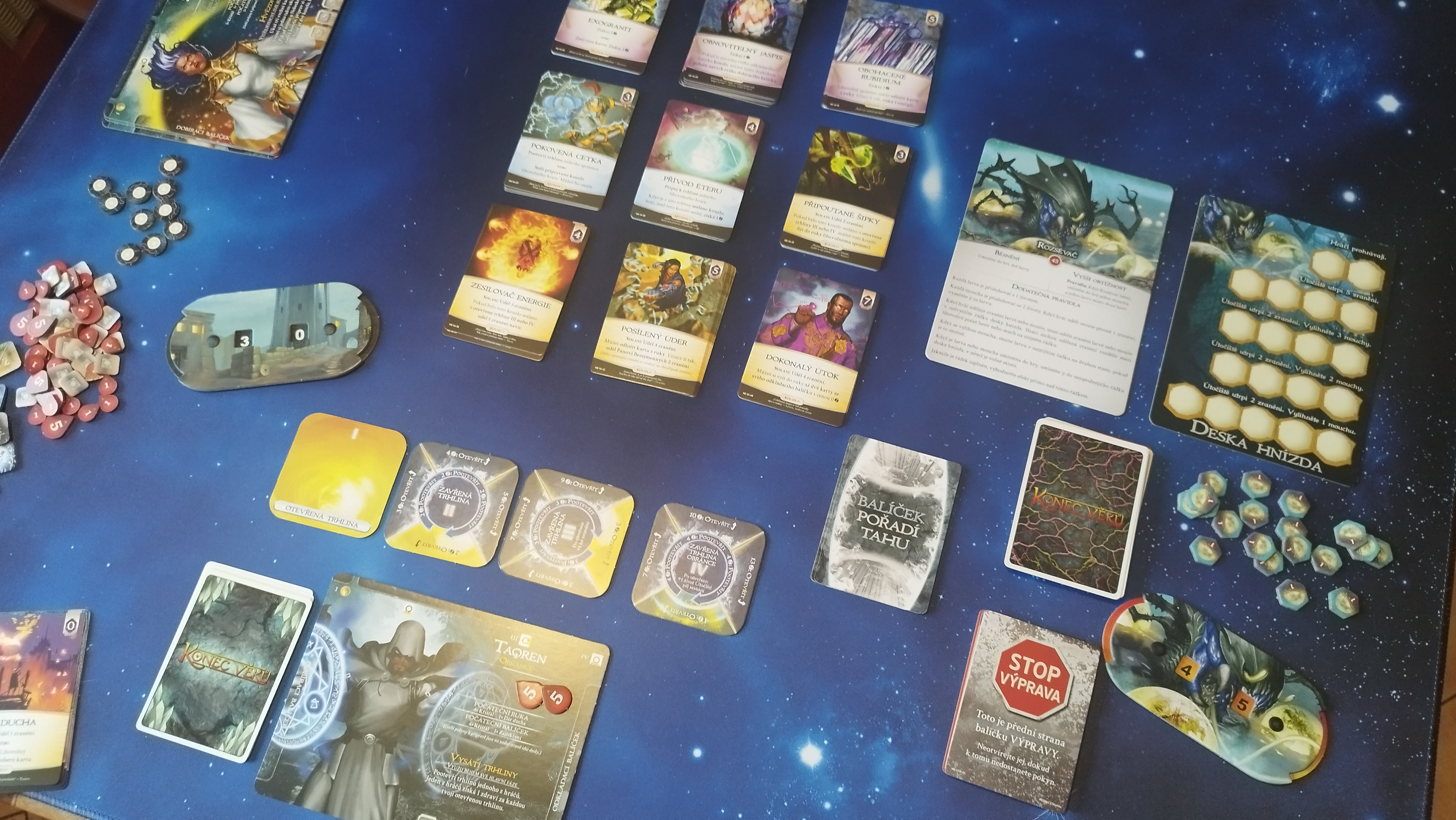 Jsou to nicméně jen marginální nedostatky, které na konečném zážitku z Konce věků: Nové éry zase tolik kaněk nenechávají. Znovu jde o svižnou deckbuildingovou kooperaci, u níž musíte zapojit i paměť. Jenom je zase o trochu širší a s možností hezkého zarámování do Výpravy, která vašim sezením dá větší váhu.