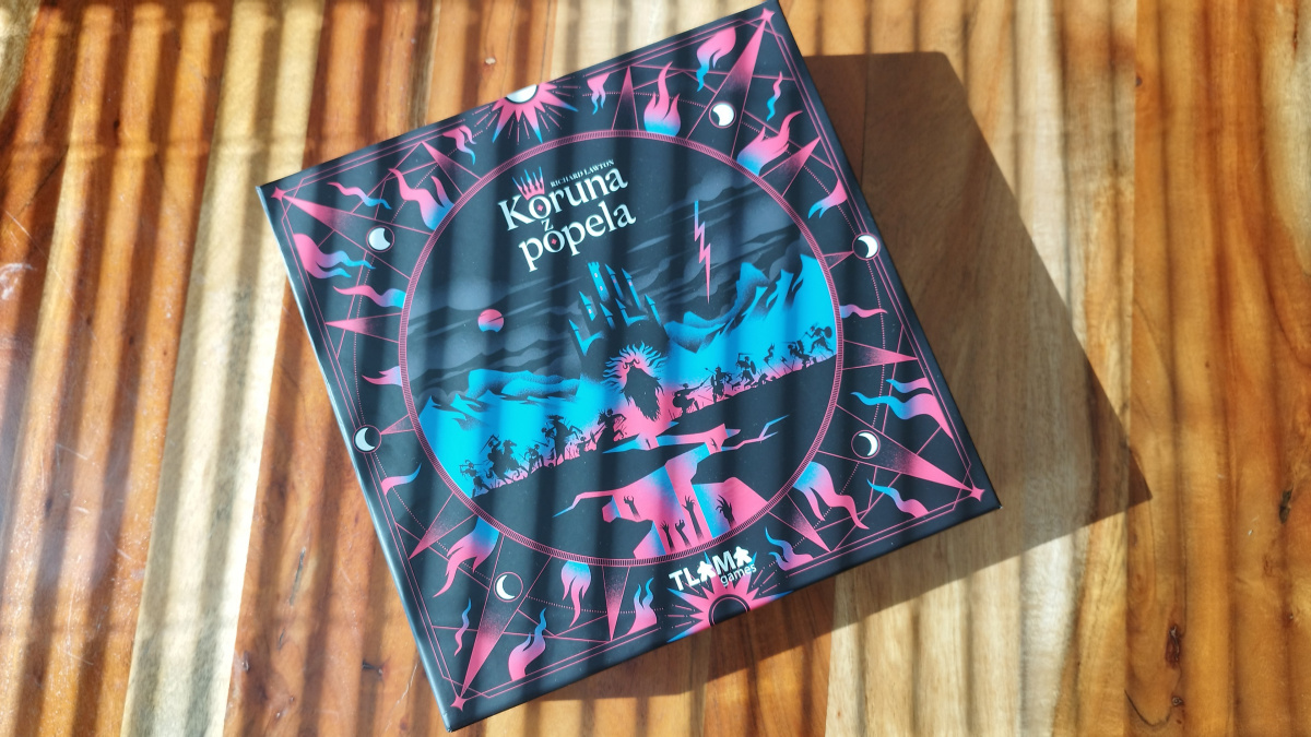 Znamenalo to, že se vytyčený cíl povedlo mnohonásobně překonat a deskovkáři se mohli začít těšit na další unikátní spojení, které v průběhu prázdnin doputovalo i do veřejného prodeje, u nás pod přeloženým názvem Koruna z popela. A pokud by snad přenádherná krabice nestačila k tomu, abyste si ji šli hned pořídit, snad vás o tom přesvědčí tahle recenze.