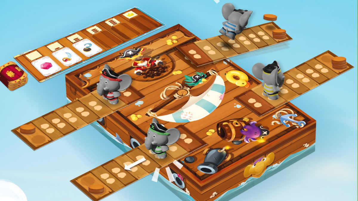 Tahle jednoduchá hra, kterou jste schopní odehrát během 15 minut (i méně), pojme 2 až 4 sloní piráty, kteří se snaží ukrást poklad kapitána Žirafy. Nicméně každý proradný pirát moc dobře ví, že se jedná o povolání ošemetné a když ho někdo u takového úkonu načapá, čeká ho procházka po prkně.