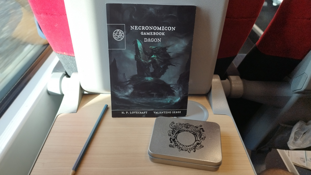 Není to tak dávno, co jste si na ZeStolu mohli přečíst recenzi interaktivní knížky Zvol Cthulhu: Volání Cthulhu, kterou u nás vydalo nakladatelství Mytago. Připomenout si ji můžete zde a já tady snad jen uvedu, že spojení „interaktivní knížka“ využívám záměrně, jelikož šlo skutečně o malý příruční sešit, který si vystačil s binárními volbami a nevyužíval herní prvky. Tahle skutečnost mne osobně poněkud zklamala a nezbývalo než doufat, že další připravený gamebook na recenzi tuhle pachuť trochu napraví. A jelikož srdce stálé bije směrem do hlubin k městu R'lyeh, volba padla na další sérii v češtině vydanou Mytagem – Necronomicon gamebook, specificky na úvodní díl Dagon. Rozčarování žel přišlo i tady.