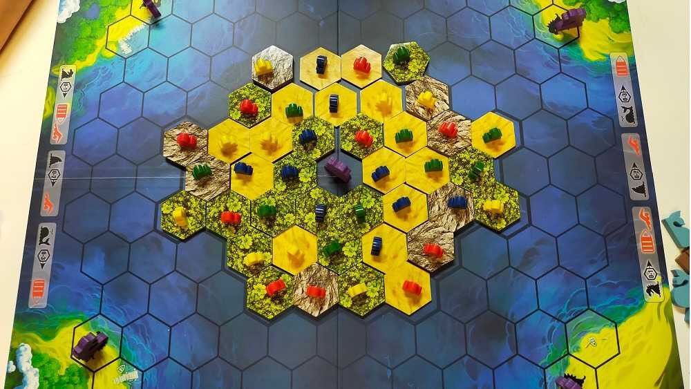 Stejně tak rozmístí každý hráč své dvě loďky po obvodu ostrova a mořské hady na jejich výchozí pole. Nyní se již do konce hry bez jakékoliv výjimky střídají hráči na tahu. Hra končí ve chvíli, kdy je odhalen jeden horský hex ostrova se sopkou. Tehdy Ostrov zanikne pod výbuchem síly z hlubin a všichni na něm přítomní i na moři umřou.
