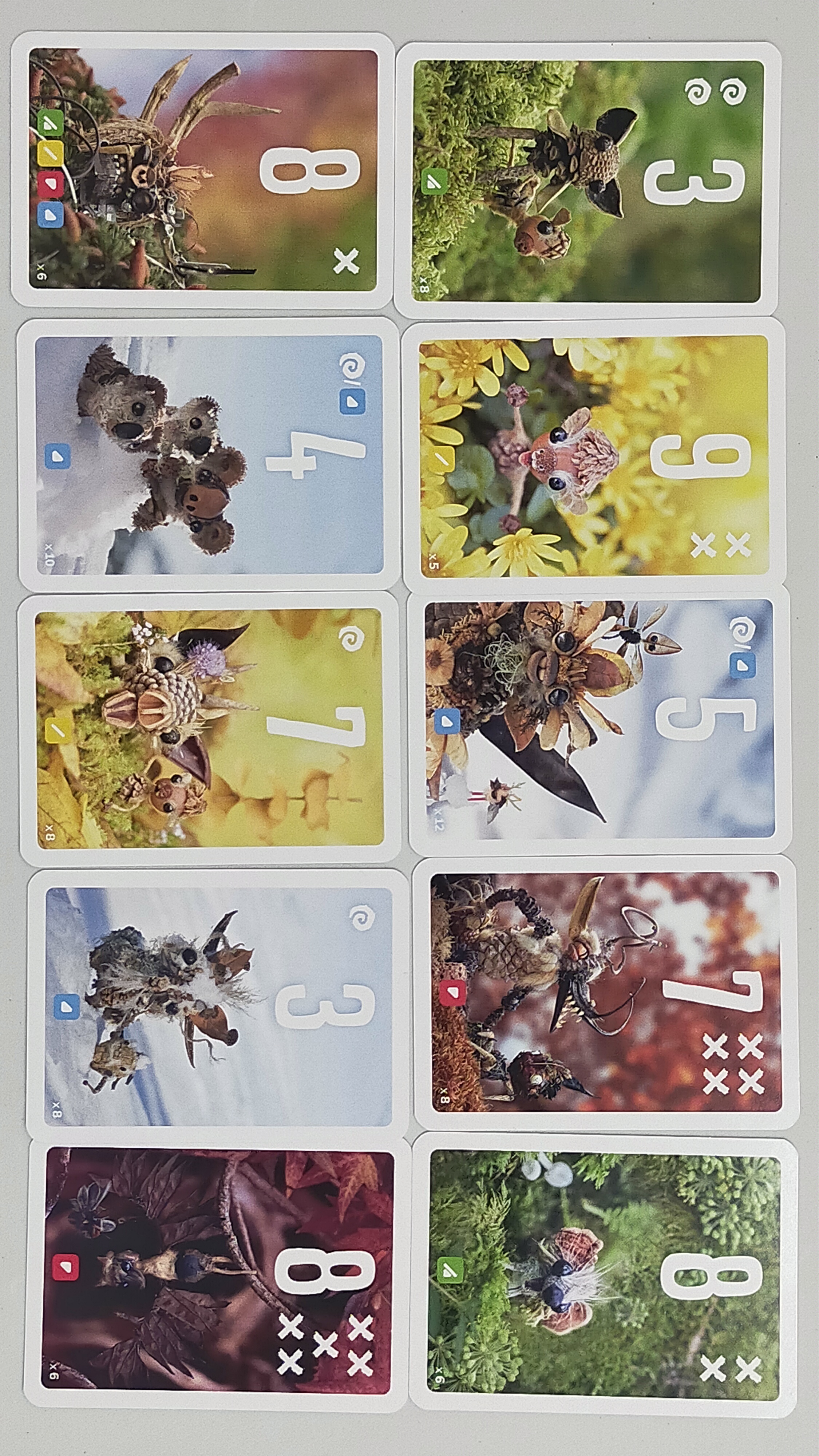 Po vyhodnocení vše zamícháte a pustíte se do dalšího kola. Na konci třetího kola sečtete své celkové skóre a vítězem se stává ten z vás, komu se podařilo seskládat nejpůsobivější skřítčí zahradu plnou správně umístěných barev a čísel.