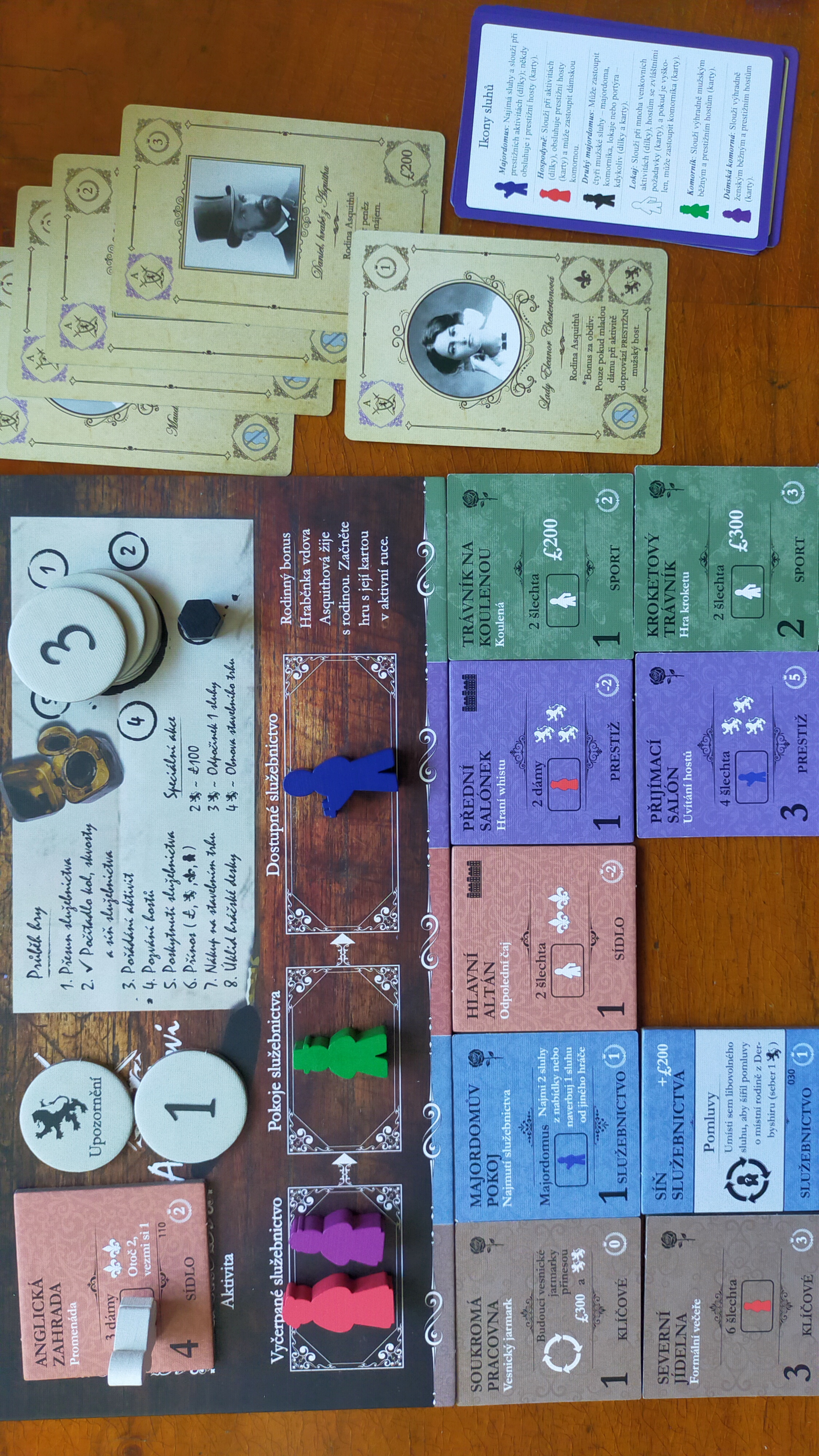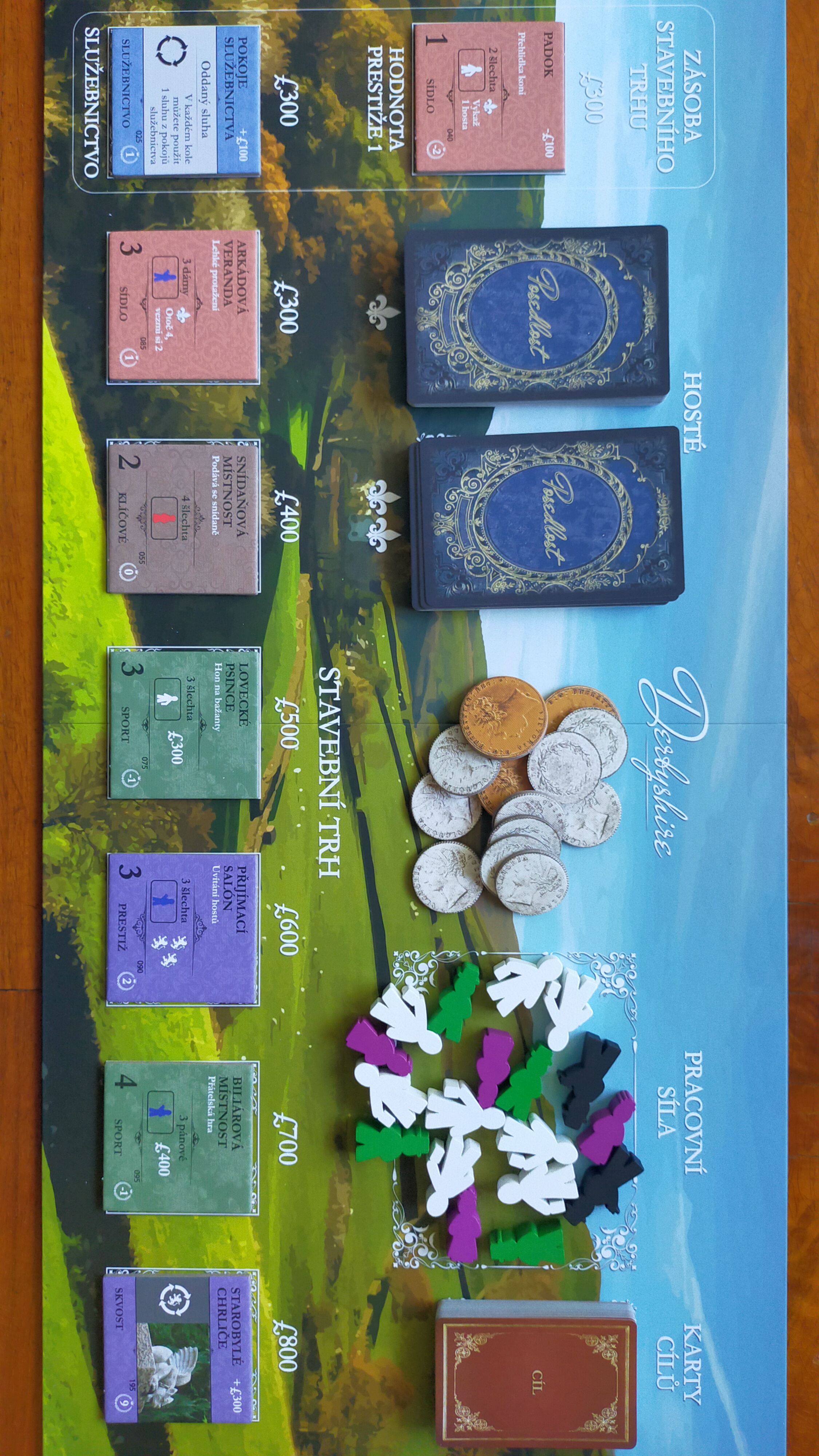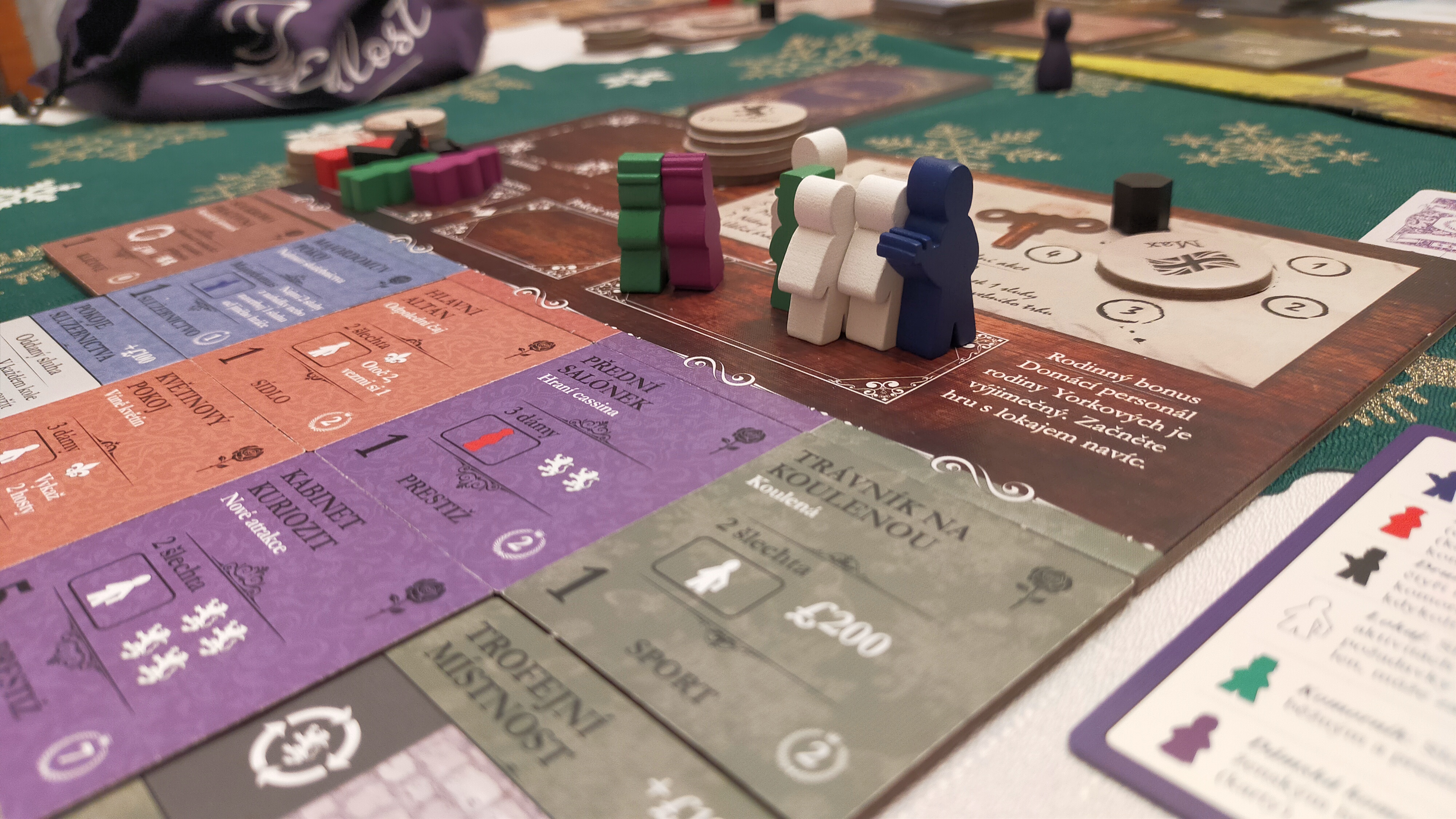 Než do hry vkročíte, připravíte každé rodině její desku, rozdělíte startovní služebnictvo, první hosty i počáteční úroveň reputace. Ze stavebního trhu vyložíte nabídku místností a vylepšení, které budou postupně rozšiřovat vaše sídlo. Jakmile sezóna začne, odhalí se karta zaměření – ta vám napoví, jaký typ rozvoje Fairchildovi v následujících týdnech ocení. Někdy touží po luxusu, jindy po dobré společnosti, sportu či služebnictvu. Už od začátku tedy víte, na co byste se měli zaměřit, aby si vás všimli.