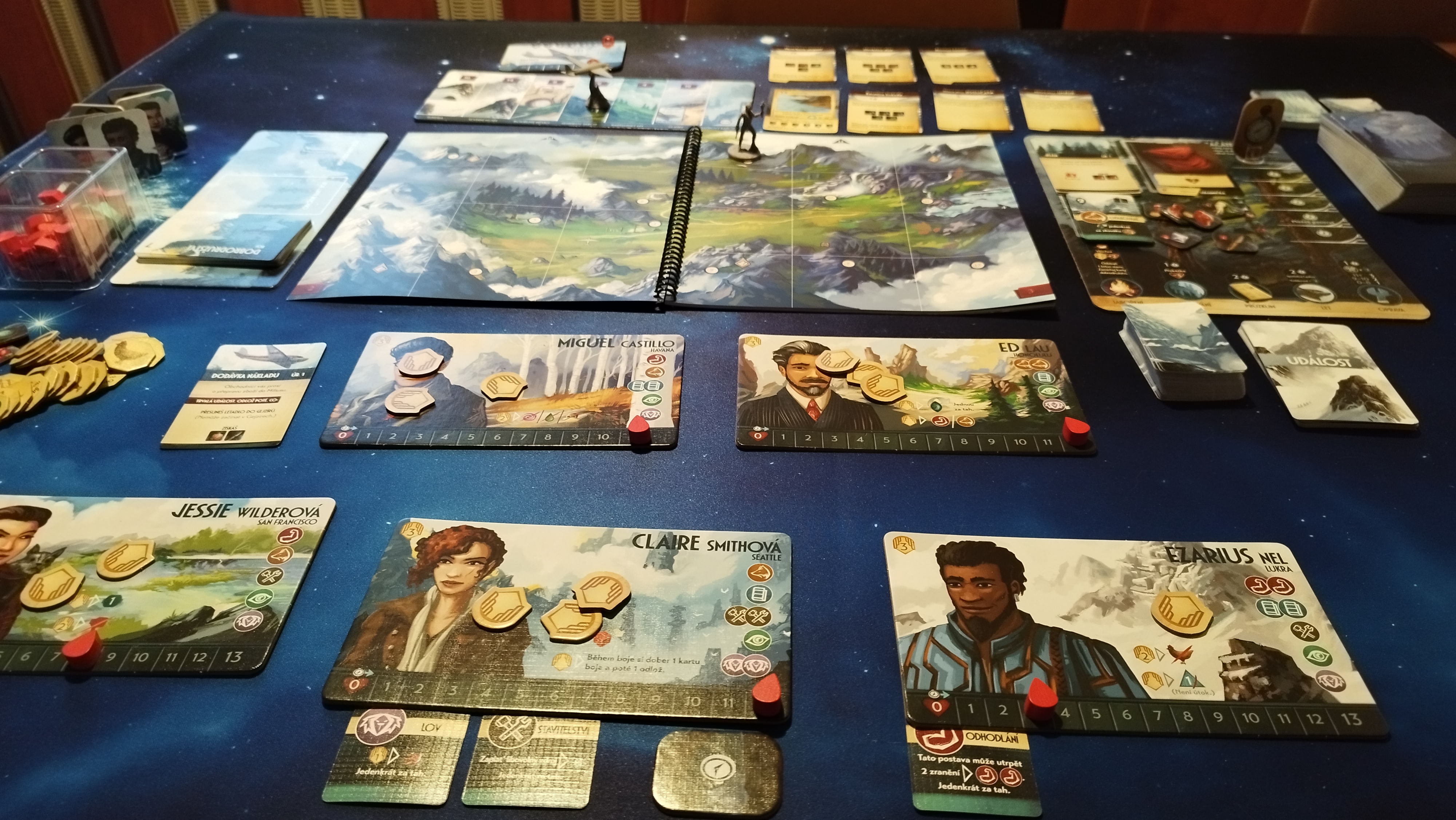 Na karty schopností navazuje karta události představující překážku, se kterou se posádka střetla. Většinou jde o utracení zdrojů, přiřazení stavů a v některých případech i o trvalé efekty, které odstraníte až po naplnění podmínky. Jde o hezký systém, který v začátcích nutí hráče více k pohybu, avšak v pozdějších fázích začne až moc zaplavovat prostor na stole.