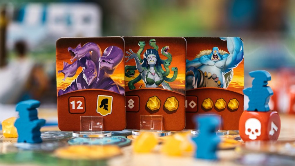 Na některých políčkách (vulkánech) se také skrývají monstra. Když je porazíte, může vás to obohatit o kořist, která vám propůjčí výhodu. Je proto pouze na vás, abyste vyhodnotili, jestli se vám takový boj zrovna hodí. Rozhodně je ale důležité správně kombinovat jednotlivé akce, mezi něž patří zmíněné souboje, nábor hoplítů (a tedy i stoupenců), těžba orichalka (cenný kov, který je důležitou složkou ekonomiky), kování medailonů a stavba chrámů či budov. To první vám přinese vítězné body, zatímco to druhé trvalé efekty do hry. Více informací se můžete dozvědět z pravidel.