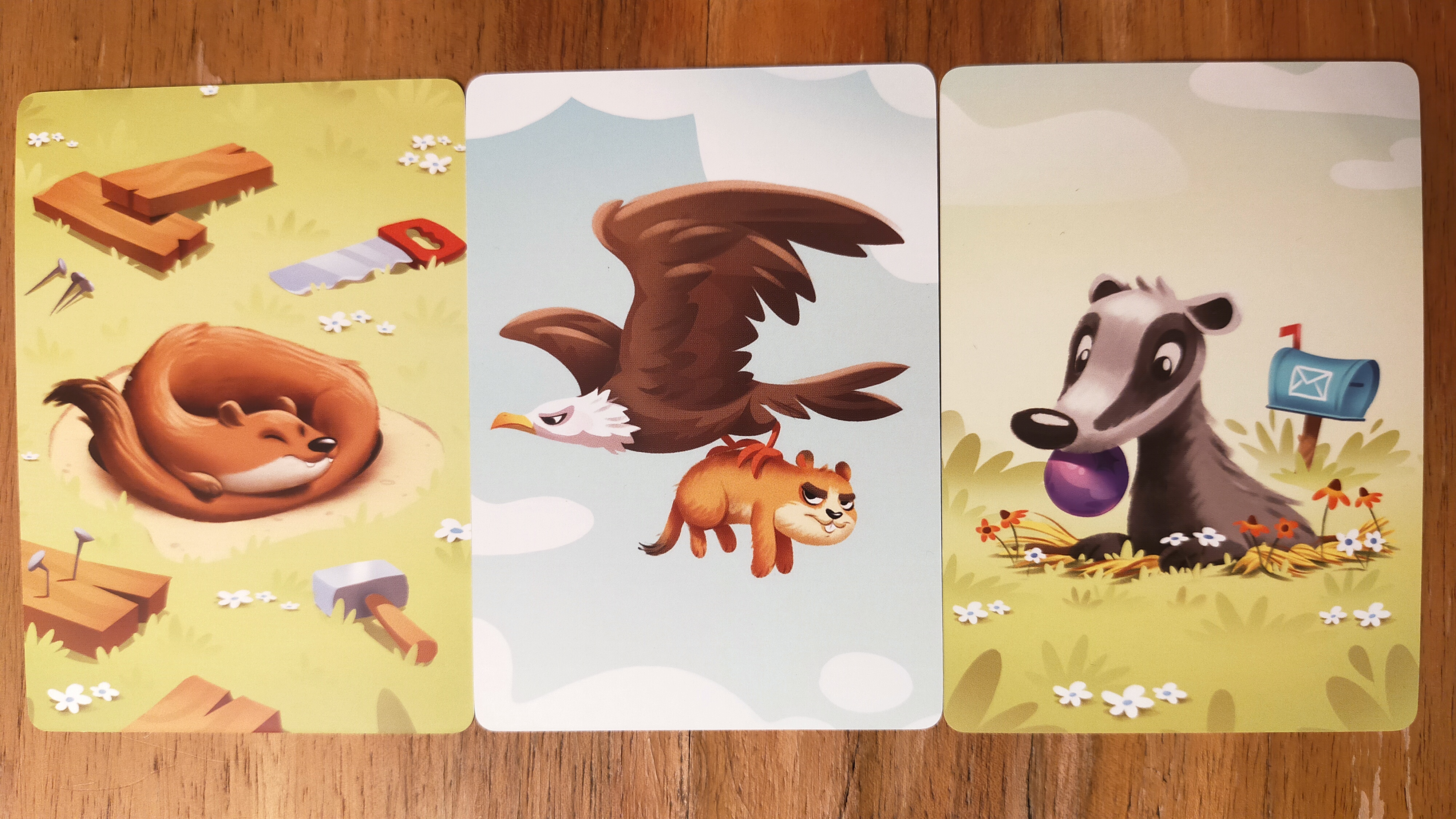 Poté si vezmete kartu nebezpečí a provedete její efekt. Jezevec vám odnese borůvku, která už je v noře; orel odnáší jednoho syslíka mimo dění; liška ukradne veškeré zásoby, které máte na stole úrody; lasička zablokuje konkrétní otvor, takže ho v tomto kole nesmíte použít. Nakonec posunete šipku na stupnici ročních období o jedno políčko doprava.
