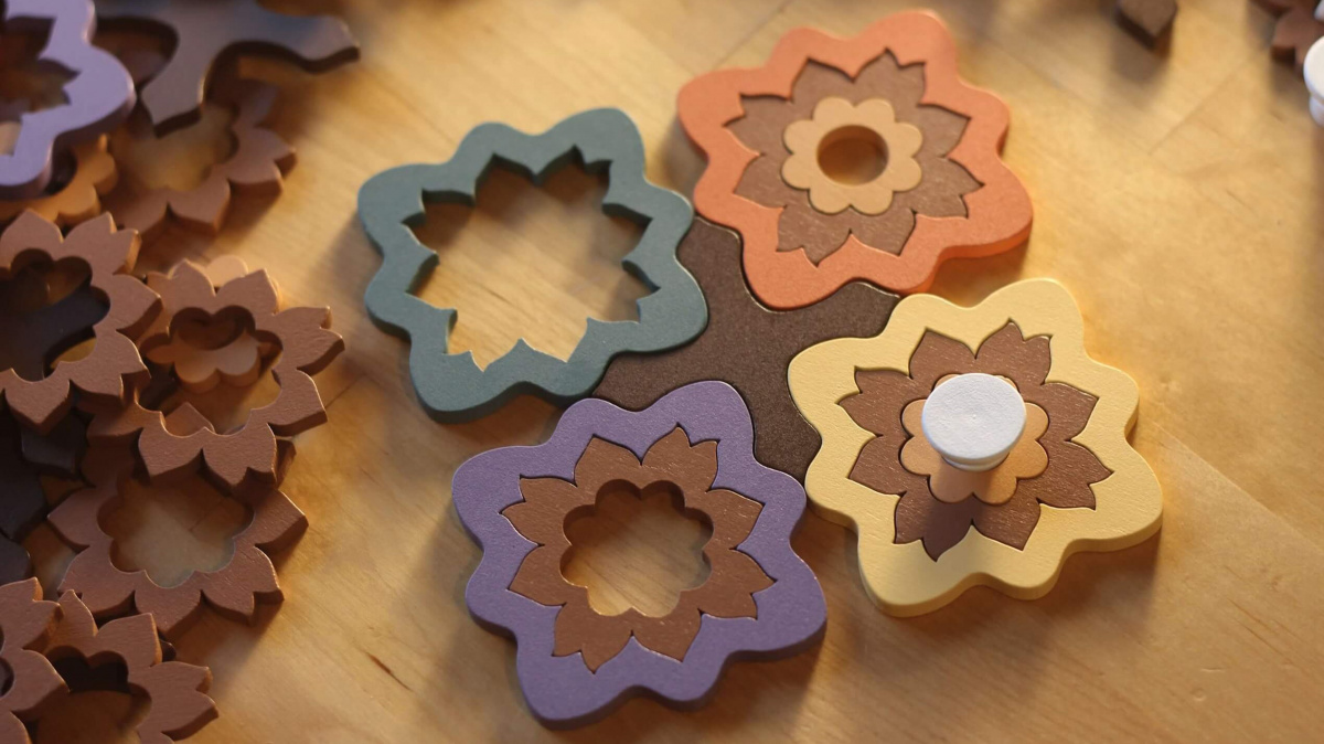 Ve výsledku tu tvoříte svou vlastní podlahu, kde každá její část může být složená z jednoho až čtyř dílů, které se přikládají od vnějšího po vnitřní – fyzicky do sebe zapadají a vytvářejí ornamenty. Čím více dílků do jedné části vložíte, tím bude na konci hry hodnotnější.