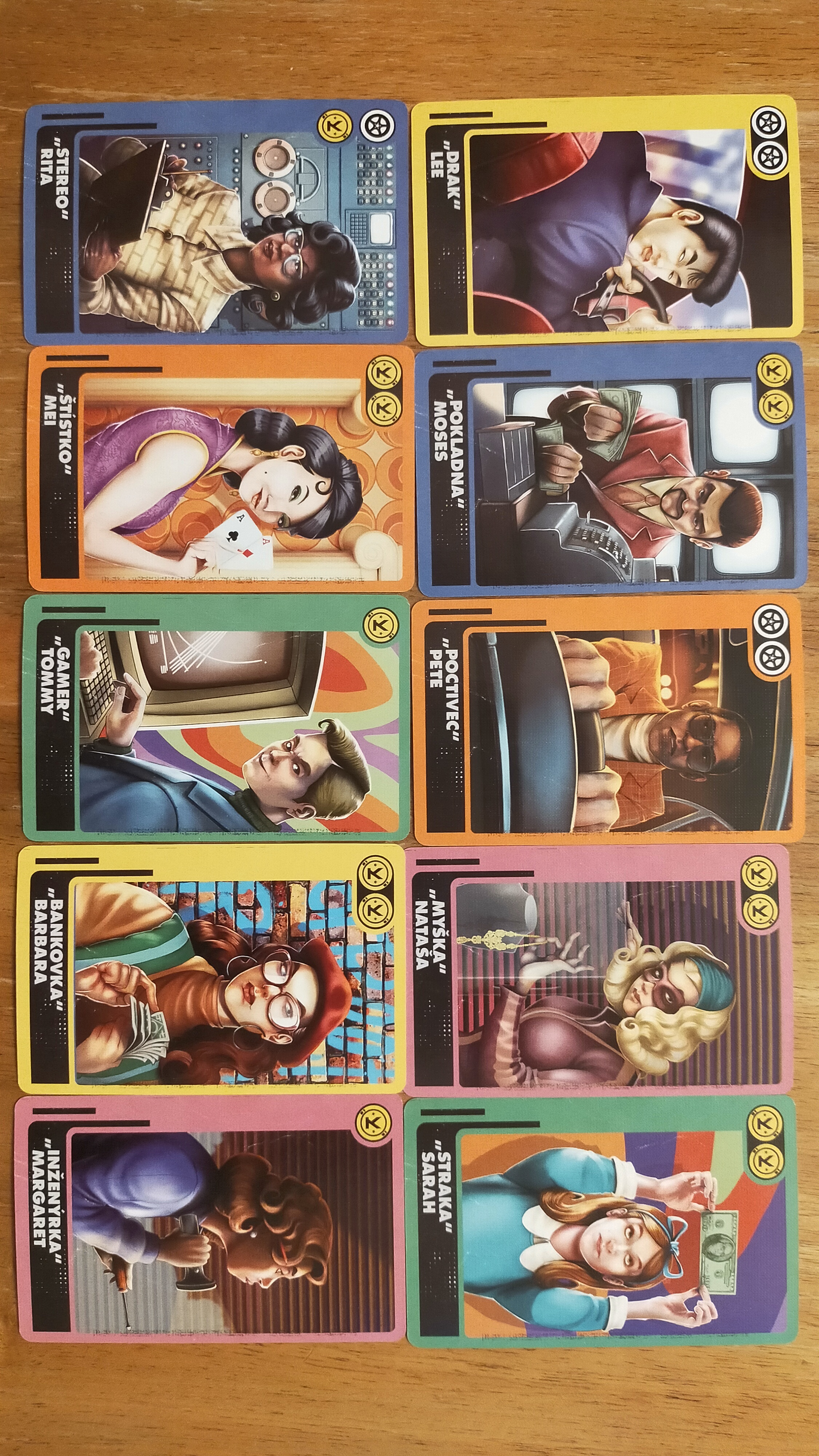 Při každém tahu máte v ruce pět karet (více až po pozdějším vylepšení skrýše) a musíte se rozhodnout, jak z jejich symbolů vytěžíte maximum — zda je utratíte za pohyb mezi městy, zaplatíte jimi specializovaného profíka, nebo je využijete k malé či velké loupeži.