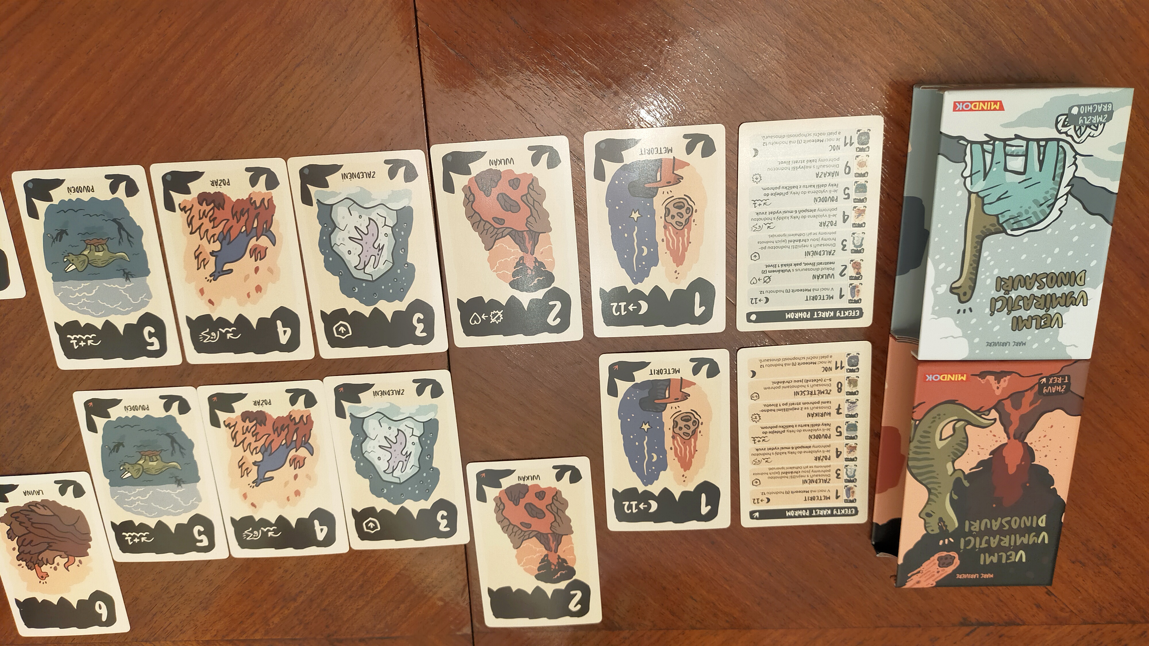 Zaprvé, obě verze obsahují shodné karty jedenácti pohrom a potom originální karty dinosaurů. V každé verzi se dozvíte popis efektů pouze některých karet a pokud spojíte přehledy efektů dohromady, stejně pravidla nepokryjí všechny karty. Je v tom takový bordel, že teprve pokud si vše vyskládáte na stůl a začnete si označovat, co kde je, tak rozlousknete, proč to nedává smysl.