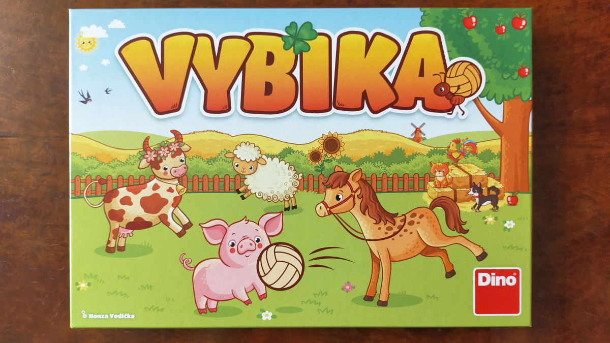 Pedagog Honza Vodička přispěchal se svou troškou do mlýna a opět od Dina. Po své dva roky staré pexesoidní lesní hře Schovka pro děti od tří let přišel s navazující, lehce proměněnou variantou Vybika z farmy. V té hráči vedle herního plánu a dvanácti zvířátek po dvojicích na žlutých a modrých kartách najdou i hrací kostku opatřenou barvami semaforu. Tak kdo koho vybije? Prasátko pejska, husa oslíka nebo krocan kravičku?