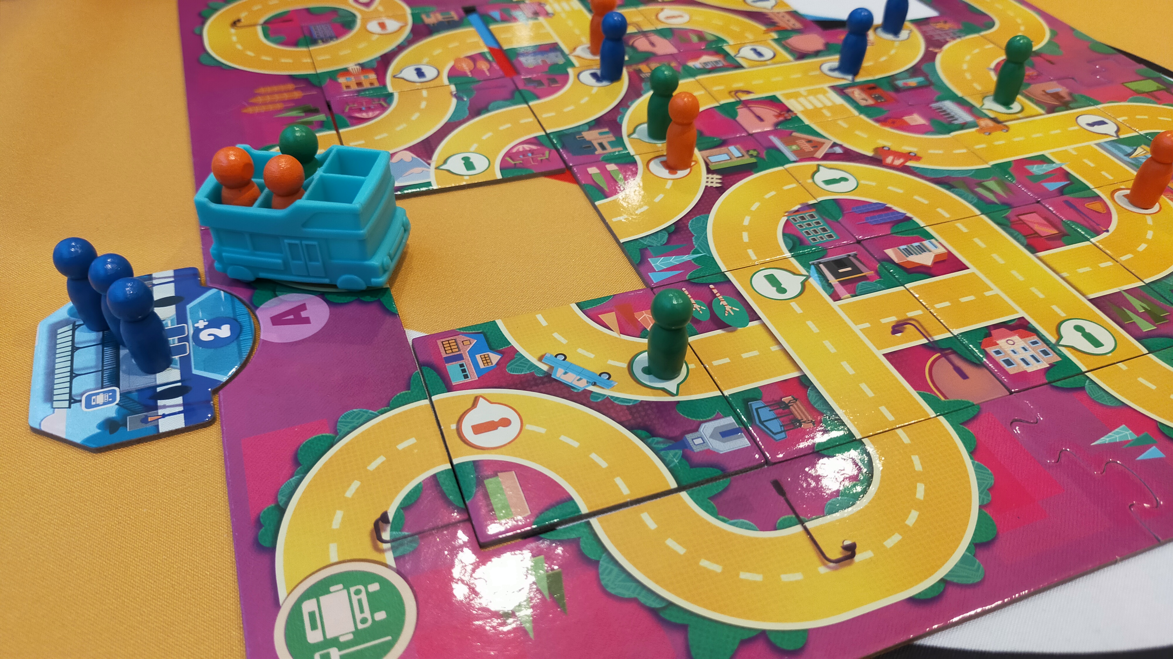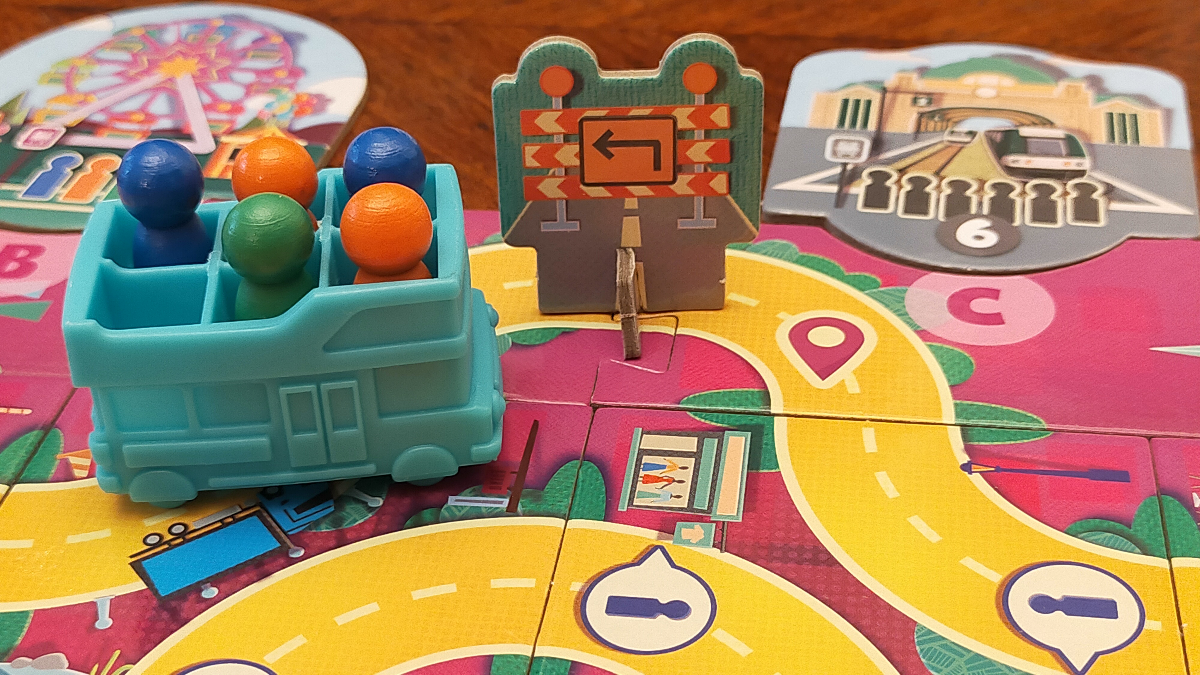 Na některých dílcích potkáte cestující v různých barvách. Za každého z nich vezmete odpovídající figurku ze zásoby a umístíte ji do autobusu – ten ale uveze nejvýš šest osob, takže musíte pečlivě volit, kdy koho naberete. Případné další cestující zkrátka nenaložíte. Když projedete kolem turistické atrakce, musíte nechat z autobusu vystoupit všechny cestující odpovídající barvy, jakou má dané místo, a přitom splnit jejich minimální počet pro vysazení.
