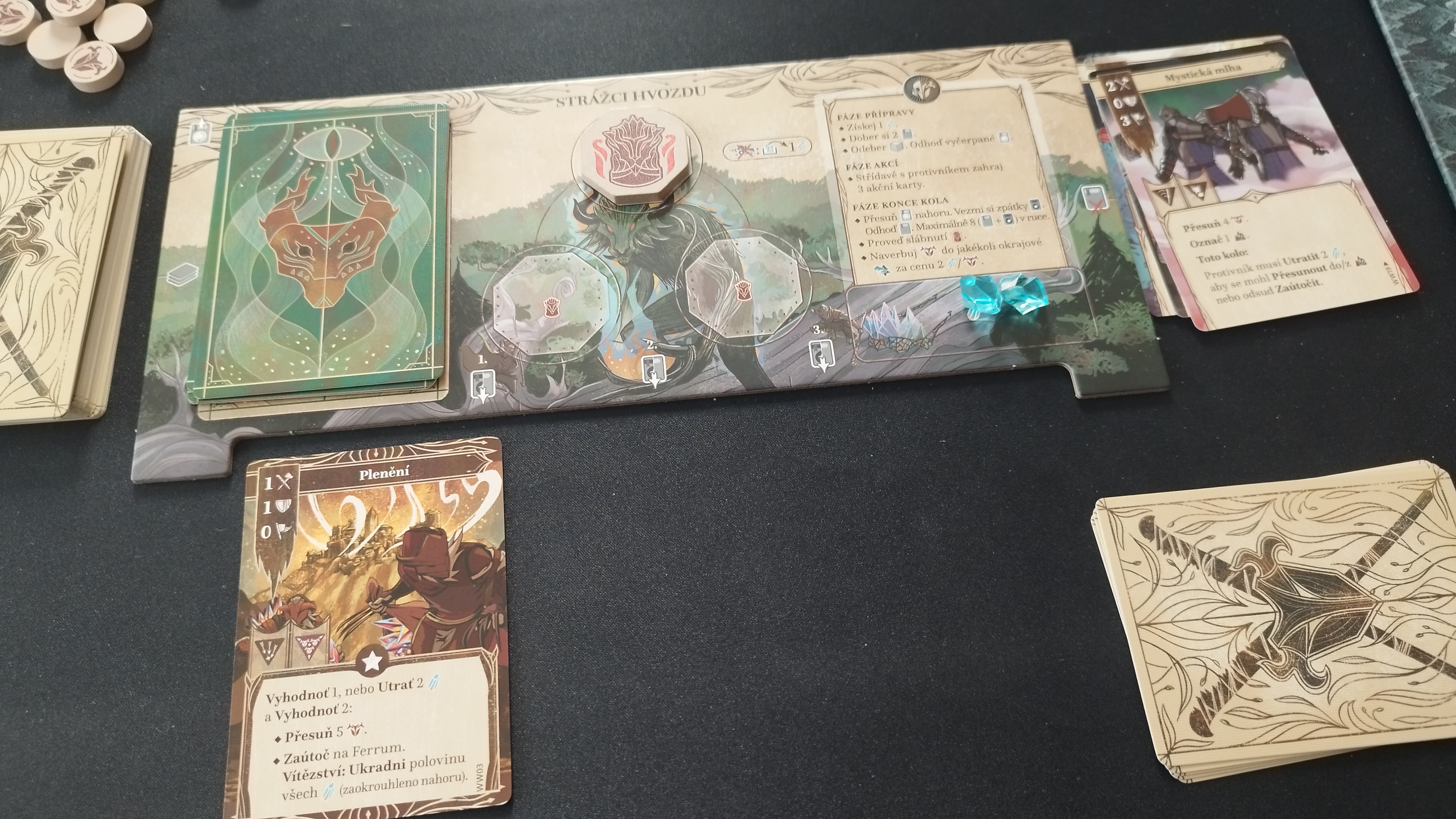 Znamená to, že vás jedna partie docela úspěšně vyčerpá. Mentální kapacita se s každým tahem snižuje a pokud chcete hrát dobře, musíte boji něco obětovat. Nejen s ohledem na neustálé vypětí, ale rovněž pro důvěrné seznámení s kartami. Pokud nebudete alespoň rámcově tušit, co vám může přijít do ruky, akce budou většinou rozhárané a odsouzené k neúspěchu. Už z principu je proto hra mířená na vášnivé hráče, rodiny se u ní budou ztrácet, ale hlavně se nebudou bavit.