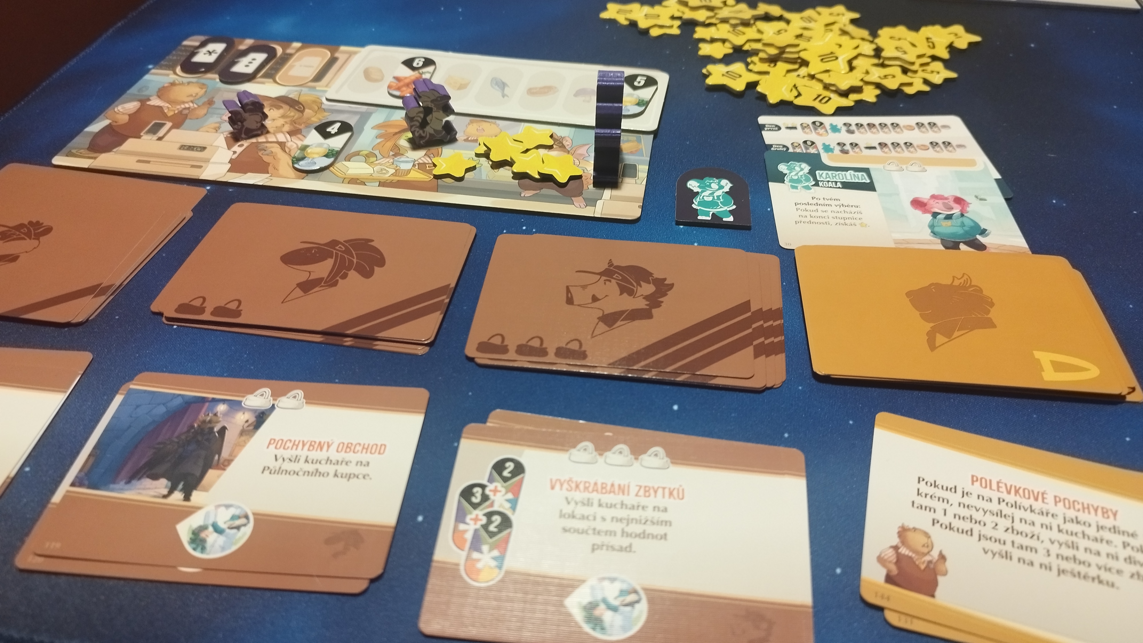 Nakonec tak jde o moc hezkou plánovací hru, kde se snažíte předvídat kroky ostatních a zároveň vidět do budoucnosti, nebo alespoň dva až tři kroky dopředu. Při vybírání surovin je nutné myslet na vylosované recepty, ale taktéž už pomalu na kritika. Protože jakmile vám mezi prsty propluje kvalitní surovina, už se do hry vrátit nemusí a vy budete na konci nucení podávat nekompletní pokrm.