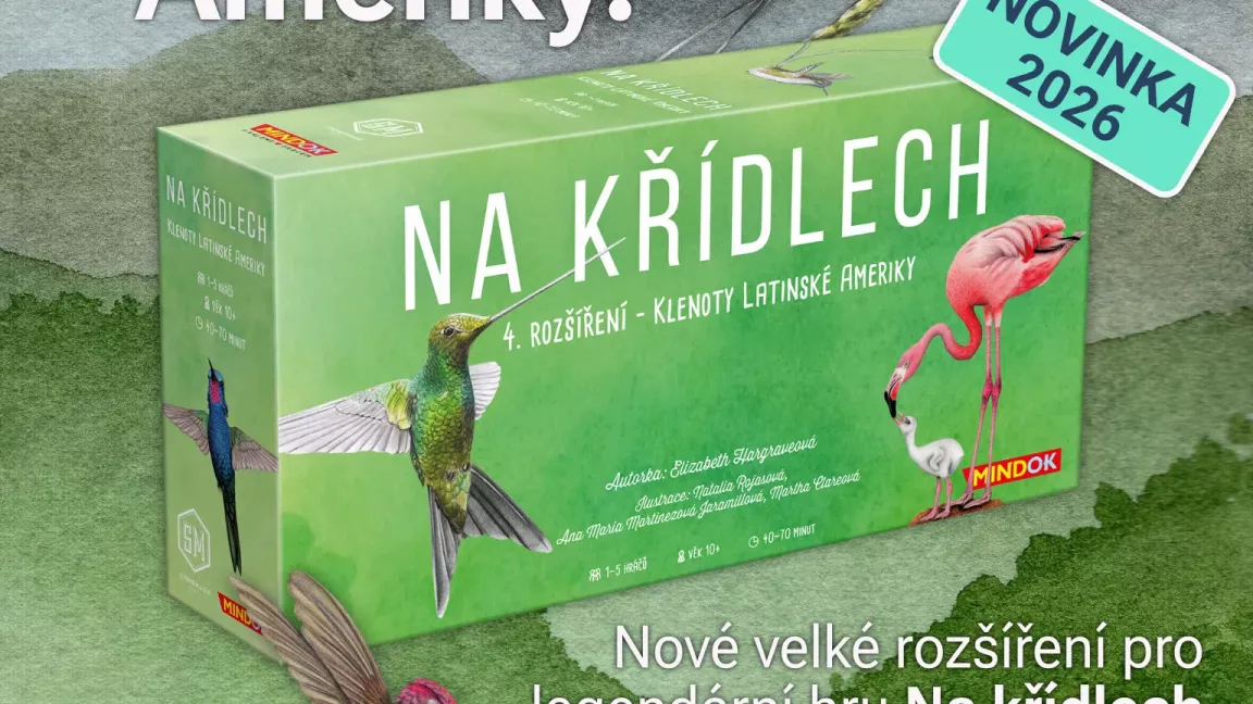 V pořadí čtvrté rozšíření oblíbené rodinné hry Na křídlech, které přináší 111 nových ptáků pocházejících z Latinské Ameriky.