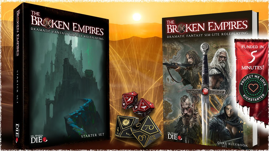 Broken Empires nejsou velkou značkou. Nepřečtete si z nich desítky románů, ale mají něco pro RPG možná důležitějšího – vytvořil je Trevor Devall během čtyř sezón Me, Myself and Die!, což je jeho populární kanál o stolních RPG a v průběhu cesty nabral inspiraci u víc než stovky jiných systémů. Vytvořil tak vlastní systém a přízemní fantasy svět s bohatým pozadím, který teď pomocí Kickstarteru konečně vypouští do světa.