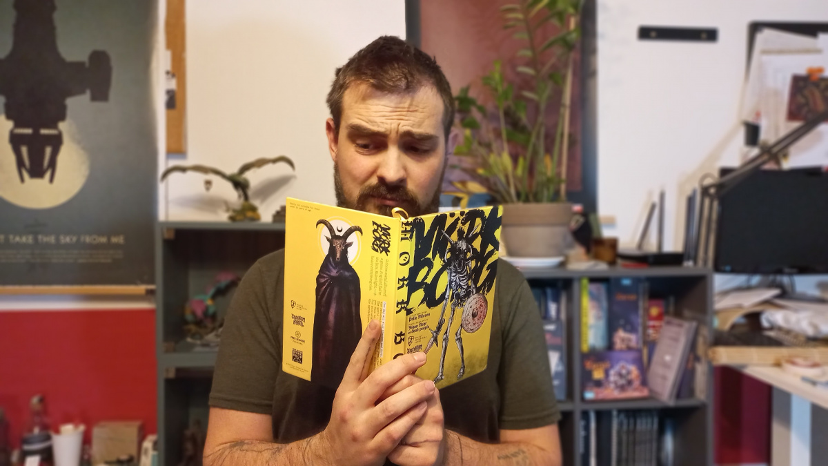 Víte co, z té představy se mi točí hlava. Pojďme zkusit nějaký realističtější příklad. Jako další recenzní výtisk mi na poličce vyčkává MÖRK BORG, temné fantasy v OSR stylu, útlá knížečka formátu A5 na nějakých 70 stránek se spoustou obrázků. To zní mnohem stravitelněji, ne? Takže to s tou rétorickou otázkou zkusme znovu.