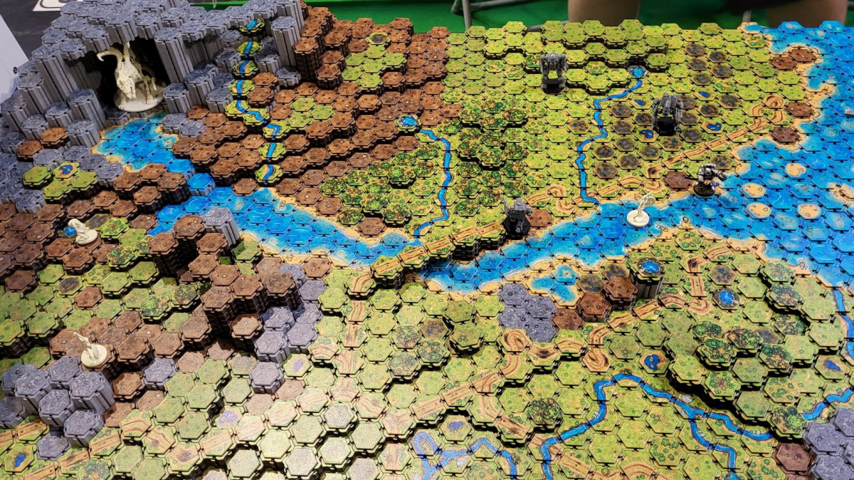 Celý systém je postavený na hexových políčkách, které na sobě mají nějaký terén – cesty, hory, lesy nebo klidně i interiéry domů. Ty do sebe jednoduše zasadíte jako puzzle a tvoříte tak svoji herní mapu. Navíc je můžete stavět i do výšky a tvořit tak trojrozměrné scenérie dle libosti. Díky lehkému vyměňování polí jde během chvíle i reflektovat změny ve světě. Pokud třeba odpálíte hráz, jednoduchou výměnou nebo nástavbou hexů zatopíte údolí pod ní.