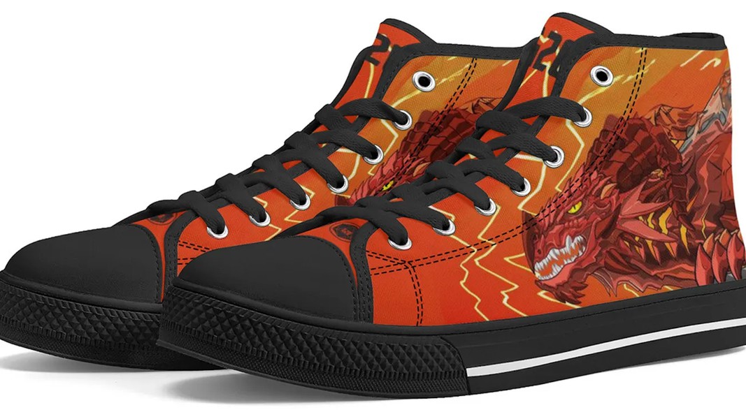 Vlastně se není čemu divit. Spousta lidí nakupuje hromady oblečení, doplňků nebo věcí do domácnosti spojených se slavnou značkou Dungeons & Dragons. Luke navíc přivedl ke své nové značce dva významné ilustrátory, kteří pracovali na slavné hře od jejího vydání. Zatím představil dva modely vysokých i nízkých tenisek s černou podrážkou s bílým pruhem (nebo naopak).