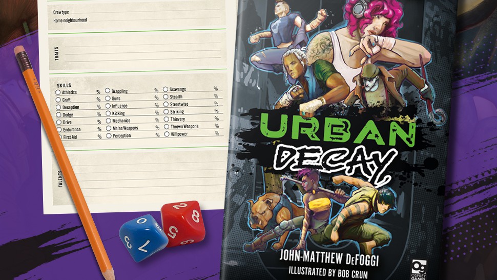 Přesně pro takové lidi jsou určená nová RPG pravidla Urban Decay od Osprey. A samozřejmě nejen pro ně. Pokud jste s láskou konzumovali klasické akční filmy o hrdinovi, který se postaví zkorumpovanému městu a pečlivě zmlátí pěkně po jednom hromadu drsňáků, budete také jako doma.